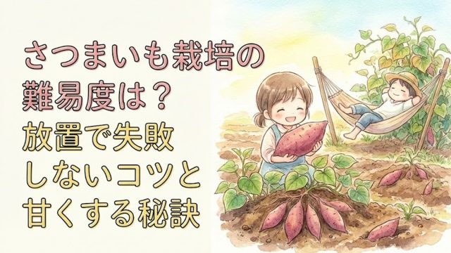 放置でも育つ噂は本当?実は「枯らさない」だけなら低いさつまいも栽培の難易度ですが、お店のような「甘いイモ」を作るには意外な落とし穴があります。肥料や石灰が逆効果になる理由やプランターでのコツなど、さつまいも栽培の難易度を左右する重要ポイントを徹底解説します。